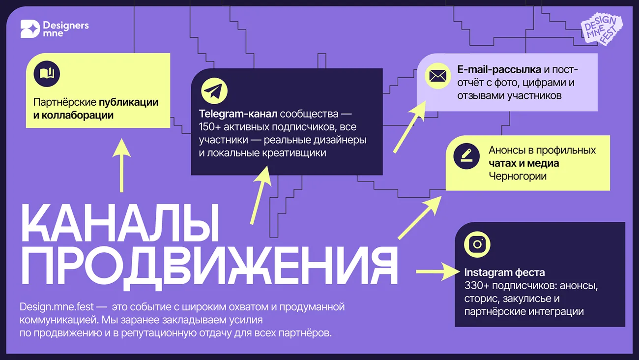 We also know that such events need to be able to reach people both online (like on Telegram and Instagram) and in person at the festival.