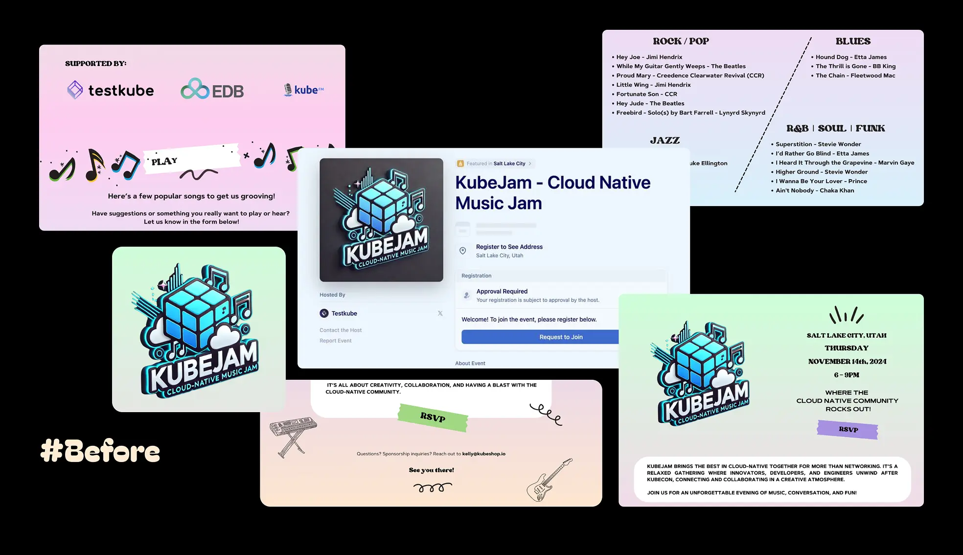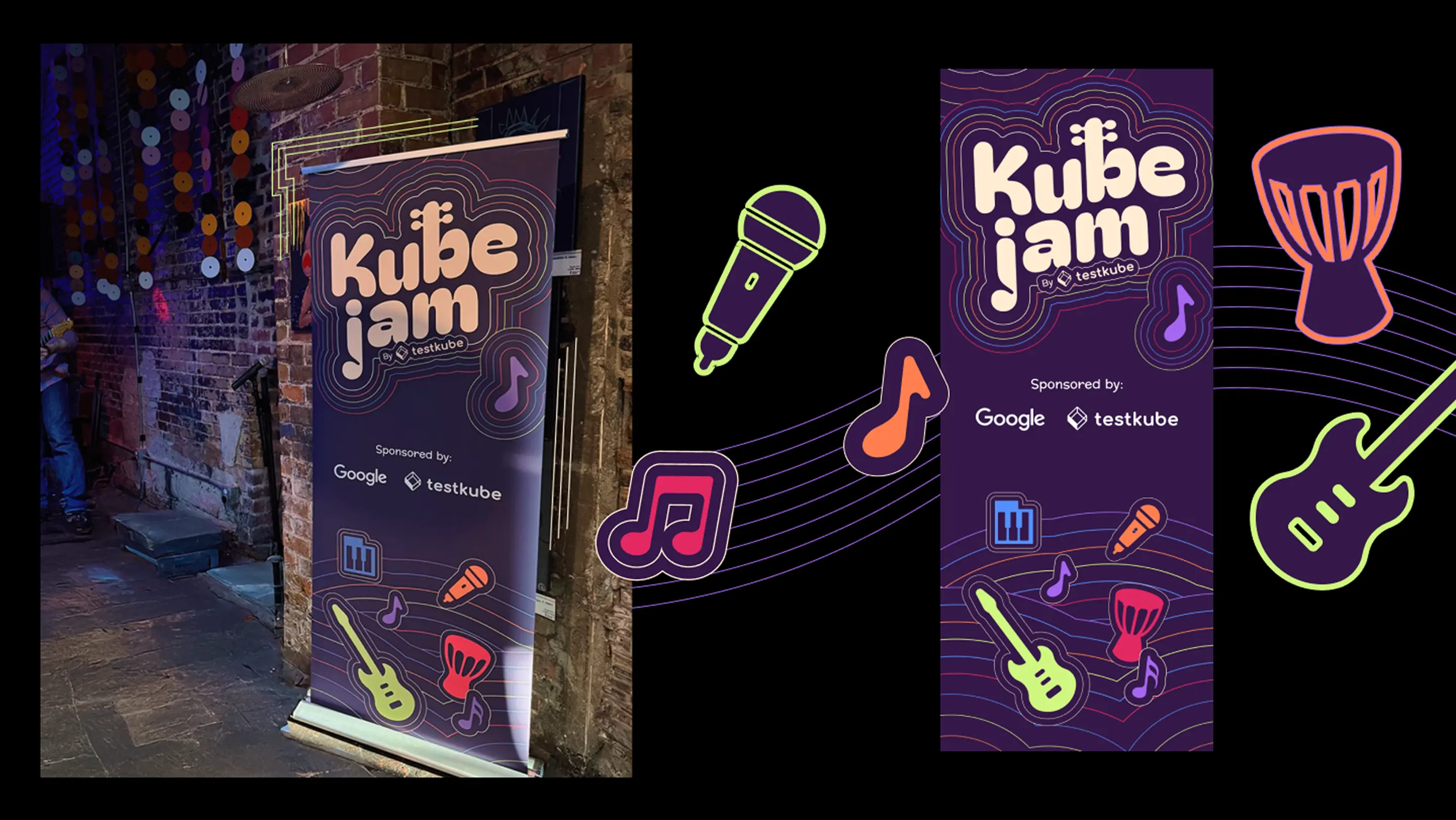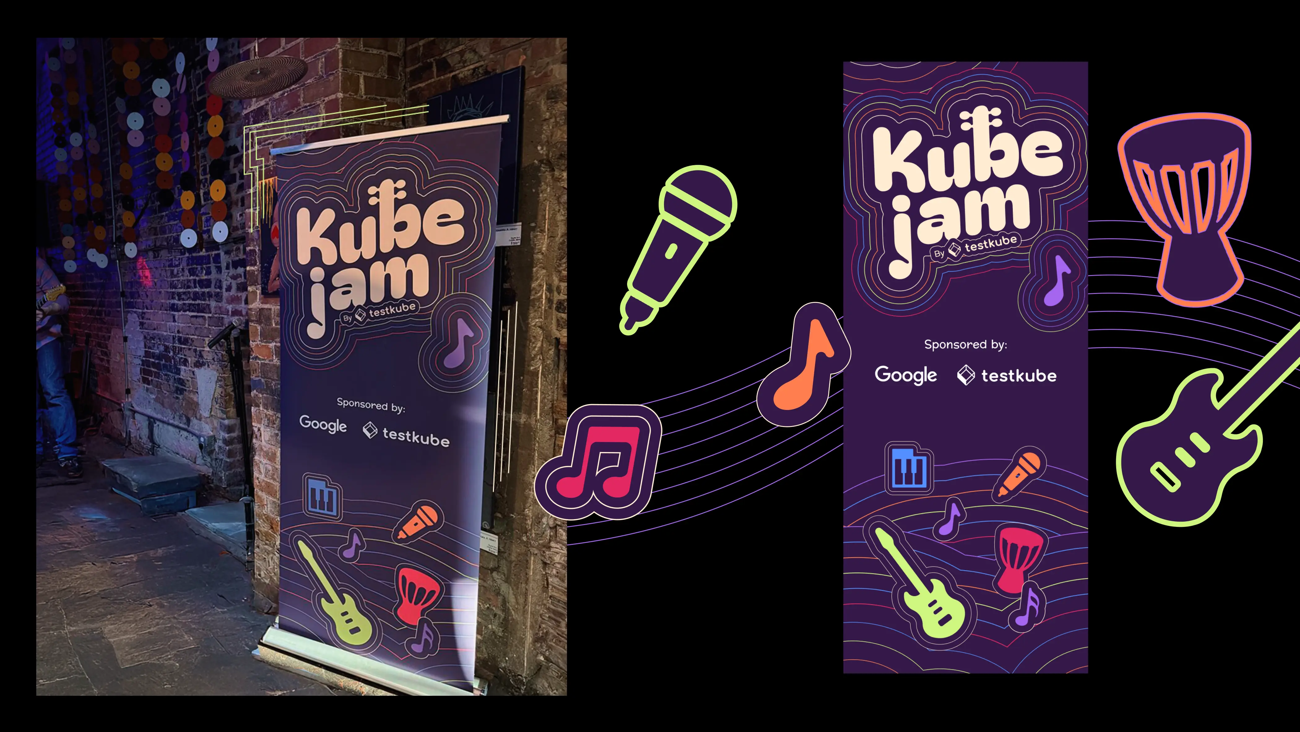 Testkube came to us needing a brand refresh for KubeJam, their music-centered networking event at KubeCon 2025. The event had been running successfully, but the original identity wasn’t scaling well across different cities and marketing materials.