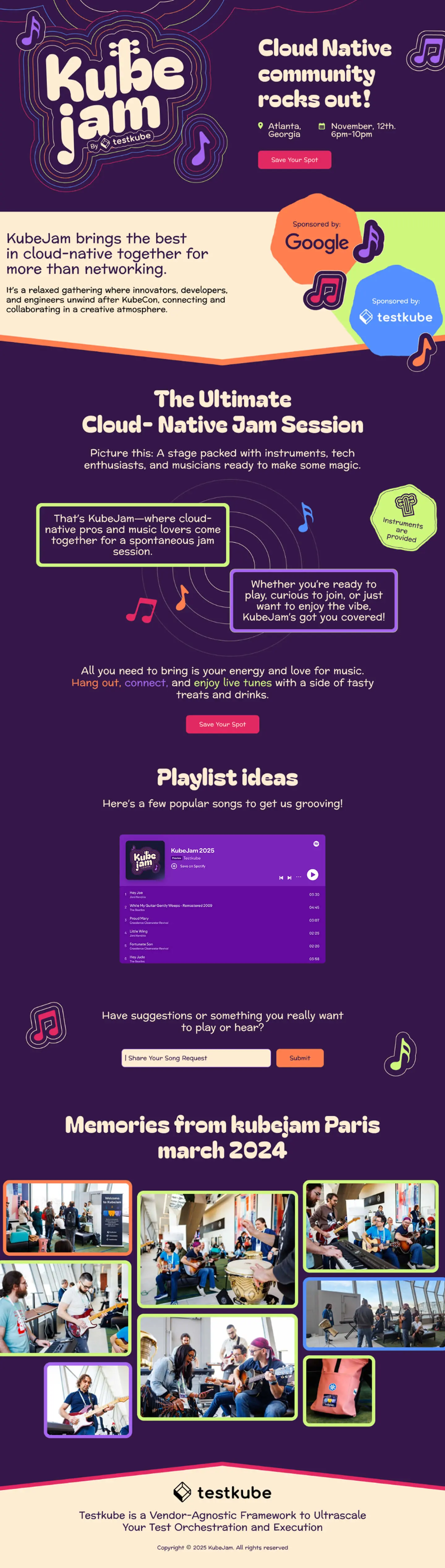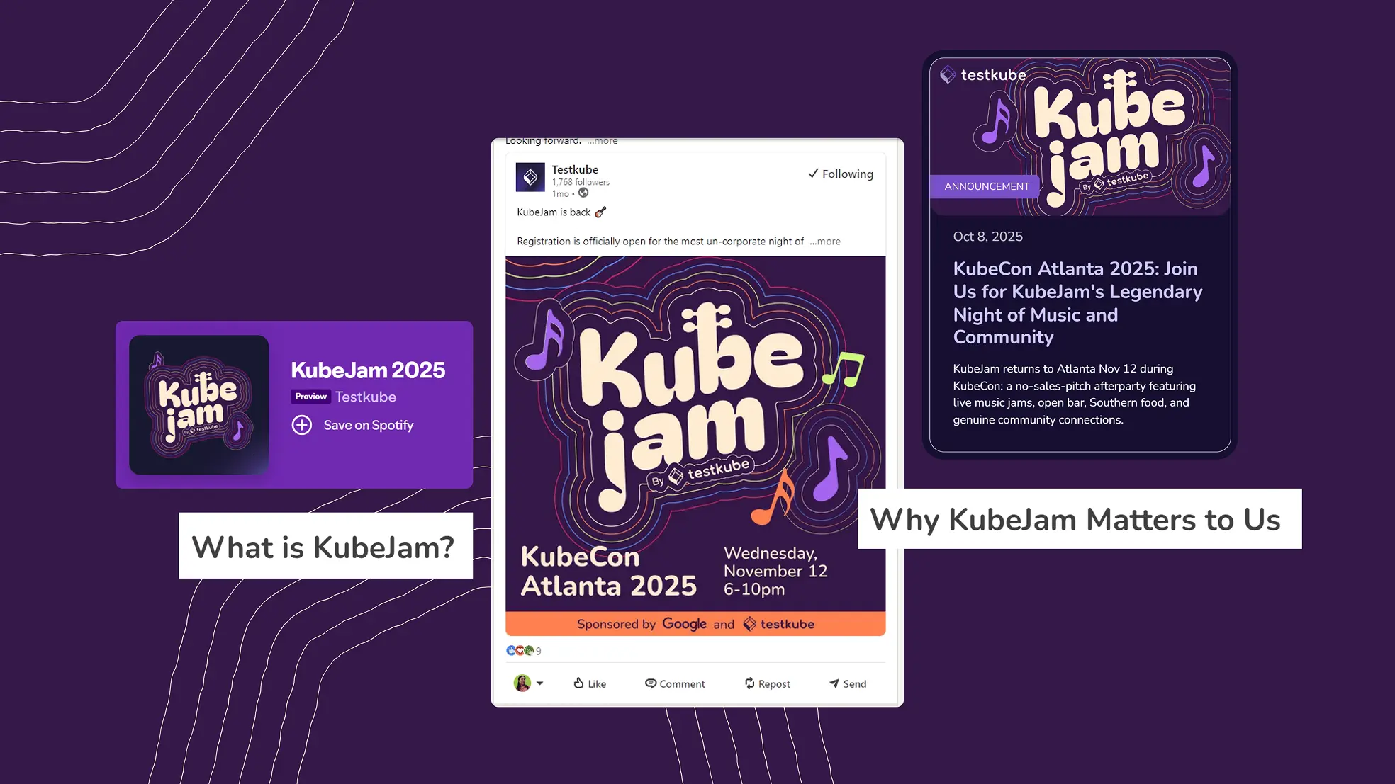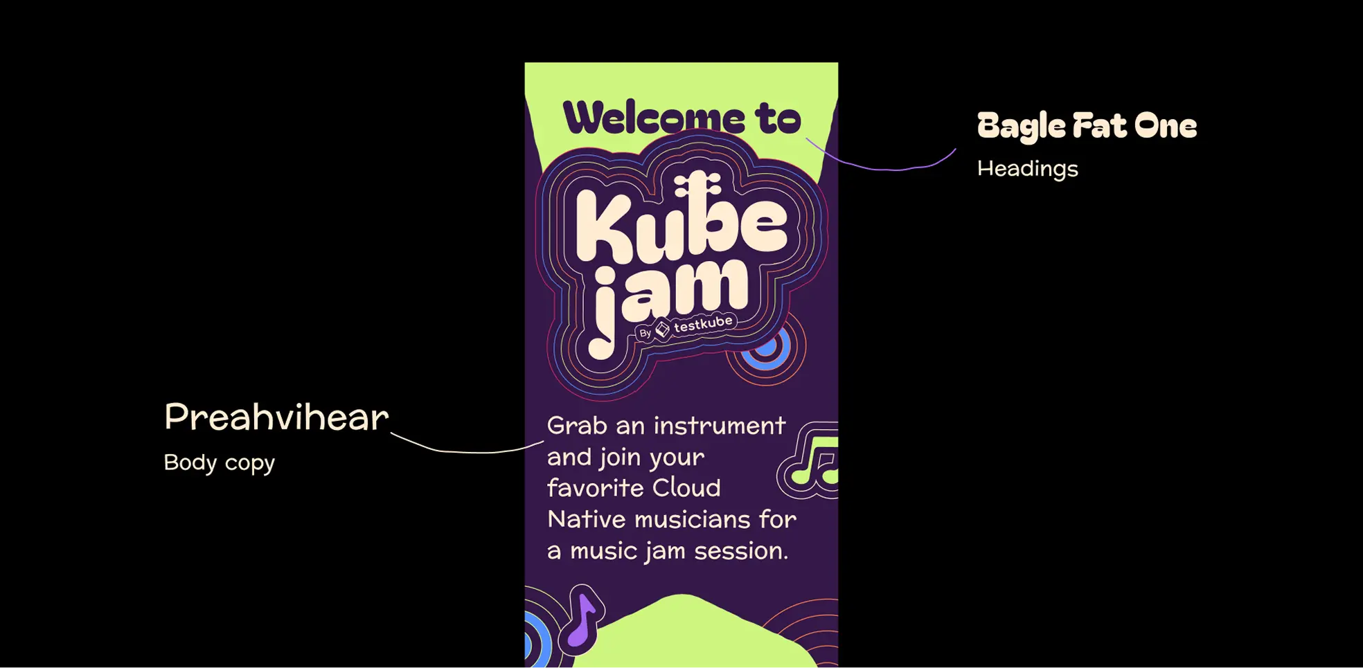 Testkube came to us needing a brand refresh for KubeJam, their music-centered networking event at KubeCon 2025. The event had been running successfully, but the original identity wasn’t scaling well across different cities and marketing materials.