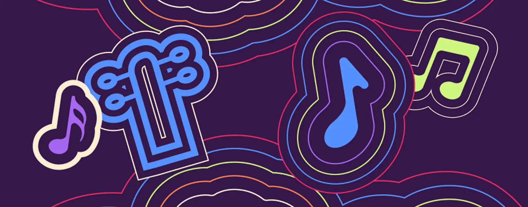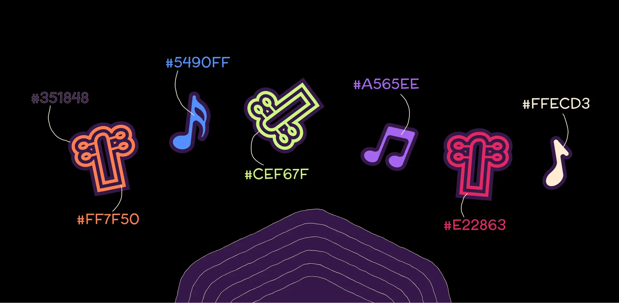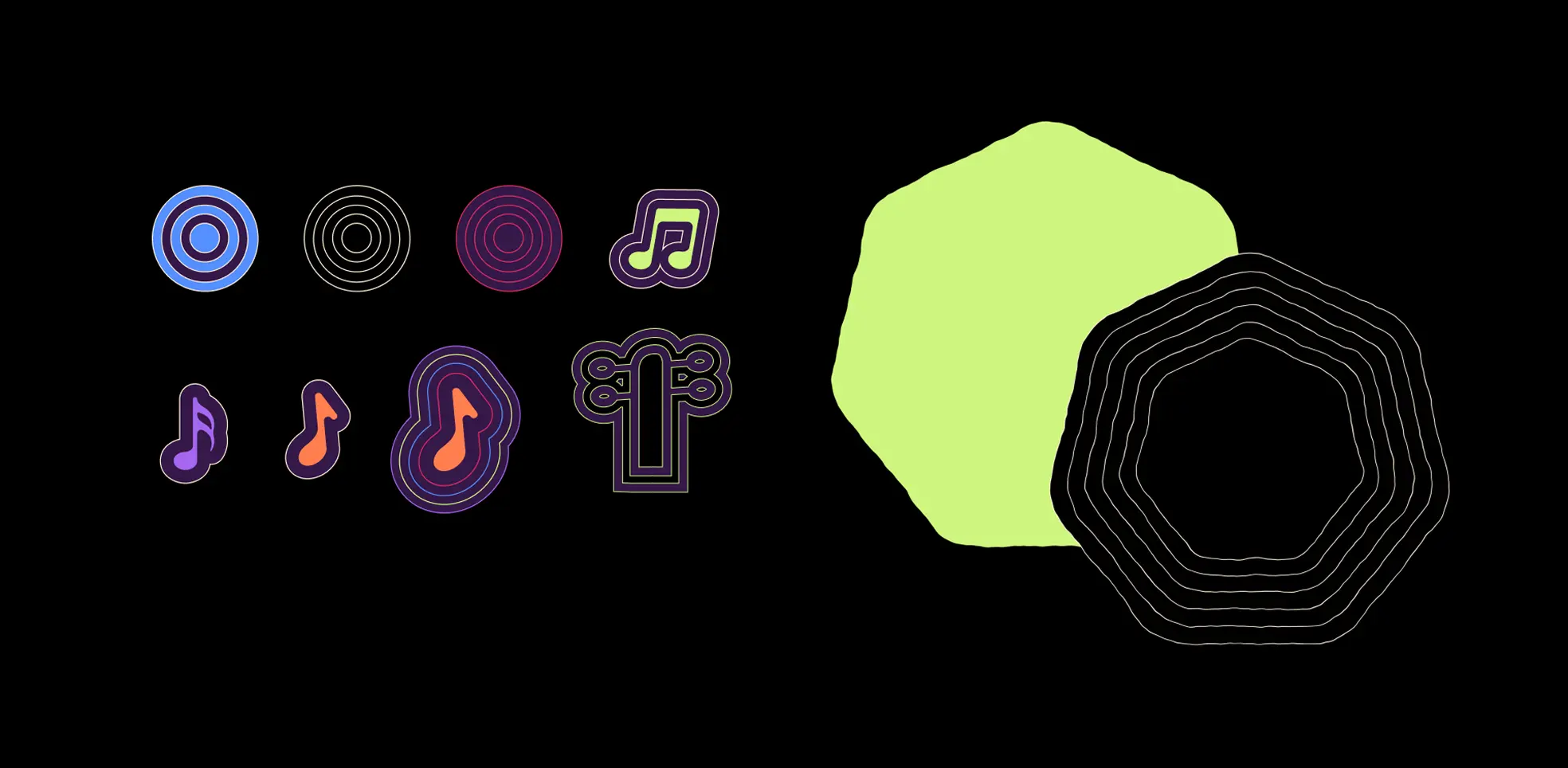 Layered contour lines became signature device. They reference sound waves, community connections, and topographic maps while providing endless compositional variation.