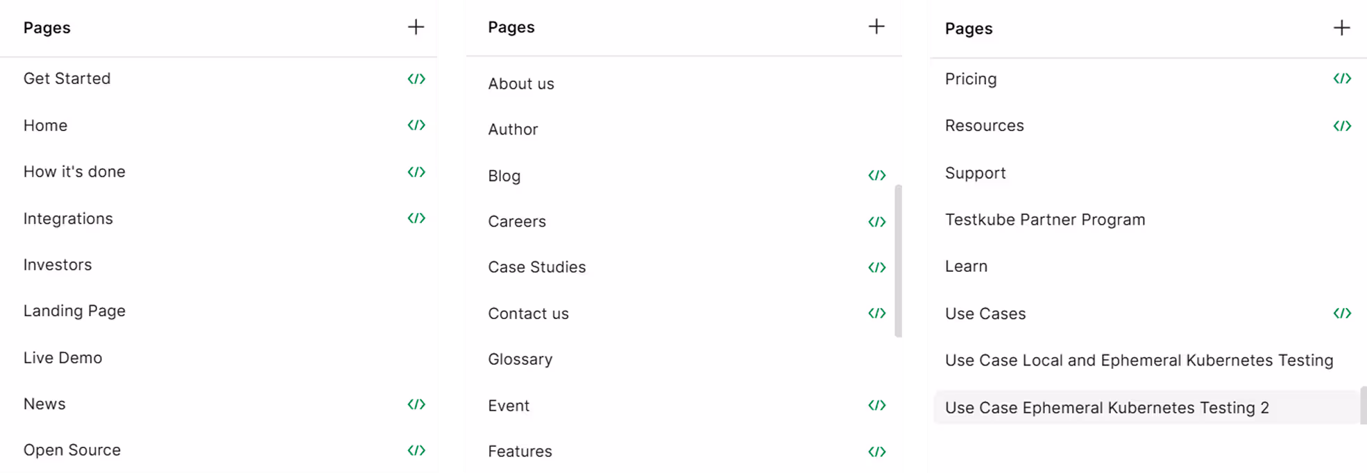 We have about 100 pages for all the projects created for Kubeshop's sub-brands. We always know which version of a page is on the website and can access all previous versions.